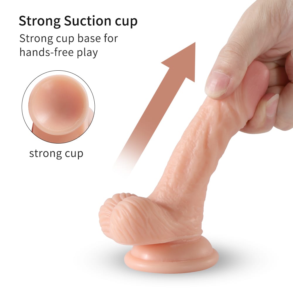 Mini dildo the 5.5inch premium lifelike dildo is designed to hit all your intimate hot spots.This delightful dildo is skin tone and has a natural outline and suction cup base: it gives you an exciting and realistic experience.The design USES elaborate details (such as plush balls) to enhance its natural appeal, while its dual-density materials bring a double amount of intimate fun.