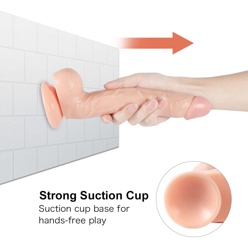 The 5.5inch premium lifelike dildo is designed to hit all your intimate hot spots.This delightful dildo is skin tone and has a natural outline and suction cup base: it gives you an exciting and realistic experience.The design USES elaborate details (such as plush balls) to enhance its natural appeal, while its dual-density materials bring a double amount of intimate fun.